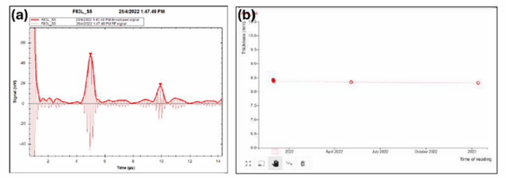 • Accuracy: Thickness measurements remained within a ±0.05 mm variation compared to reference UT data, ensuring high reliability.